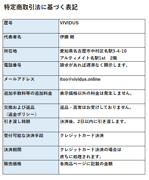 特定商取引法に基づく表記